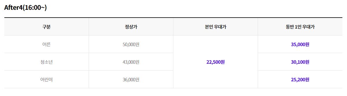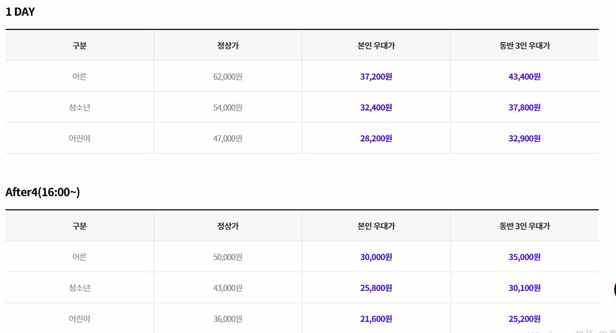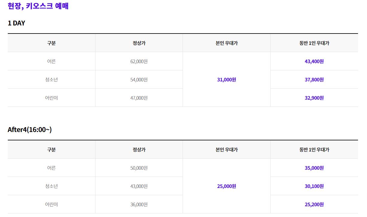 제휴카드 현장할인 ( 온라인 예매와 가격이 다르니 꼭 참고 )