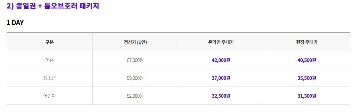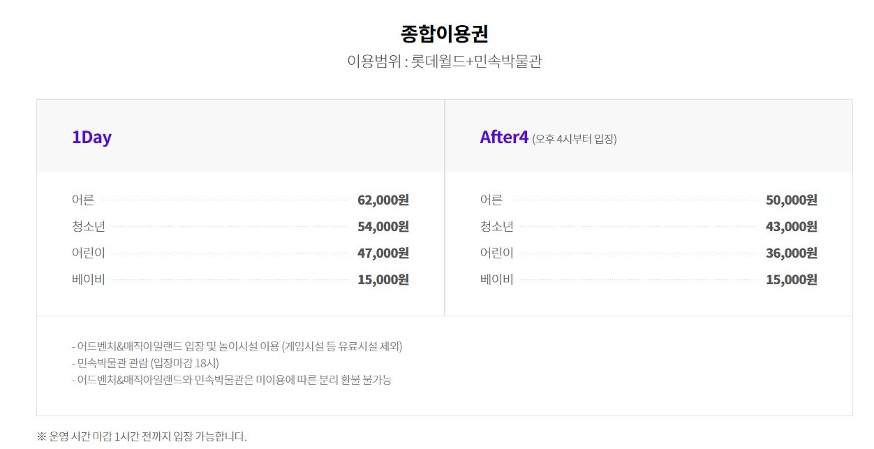 롯데월드 이용요금 ( 종합이용권/파크이용권 )