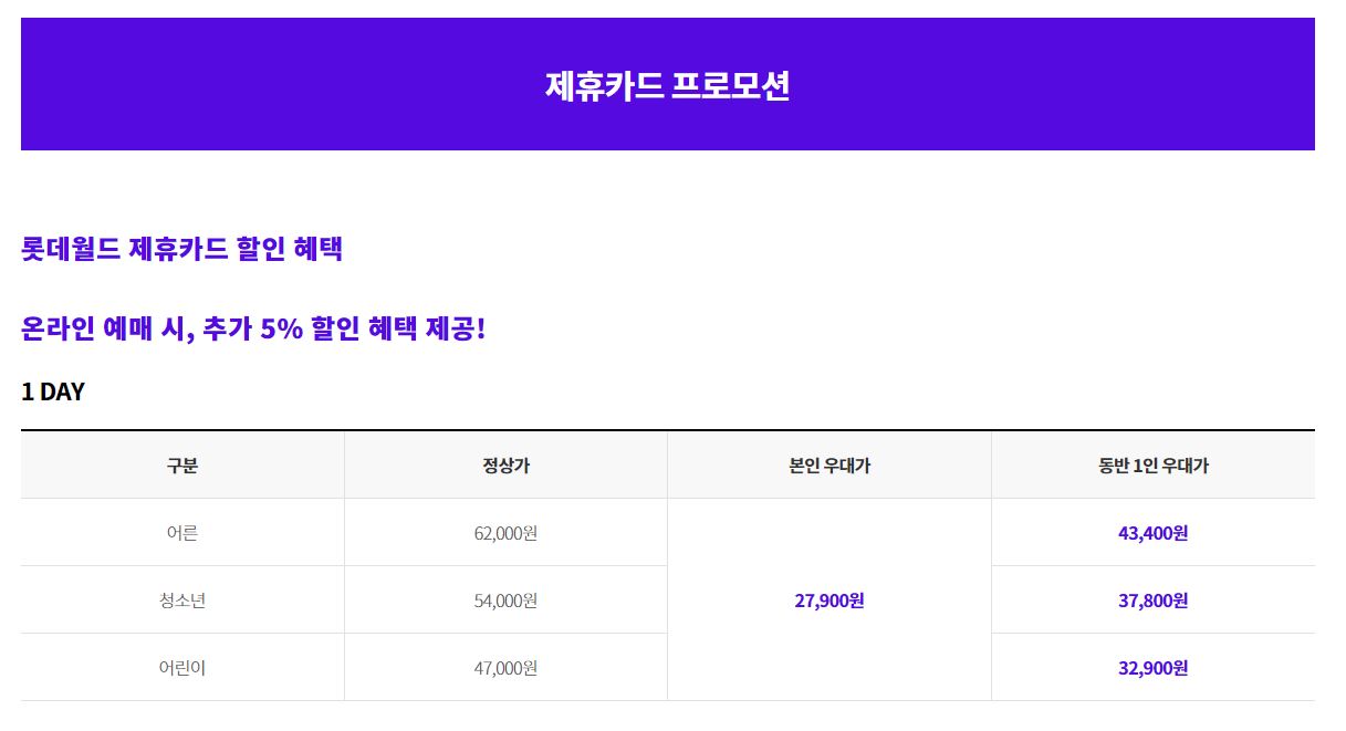 롯데월드 등 놀이공원은 제휴카드 할인이 잘 되어 있으니 확인 후 할인 적용 필수