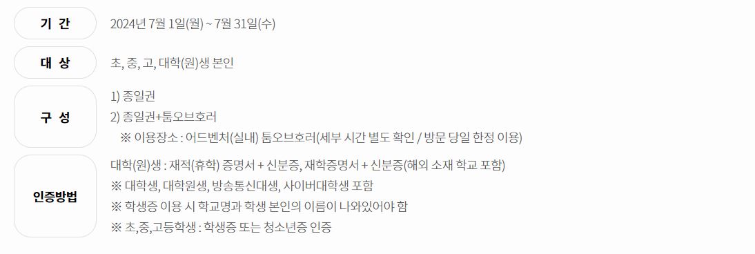학생할인의 경우 현장예매가 더 저렴 / 대신 현장 유인 매표소만 가능  ( 인증 )
