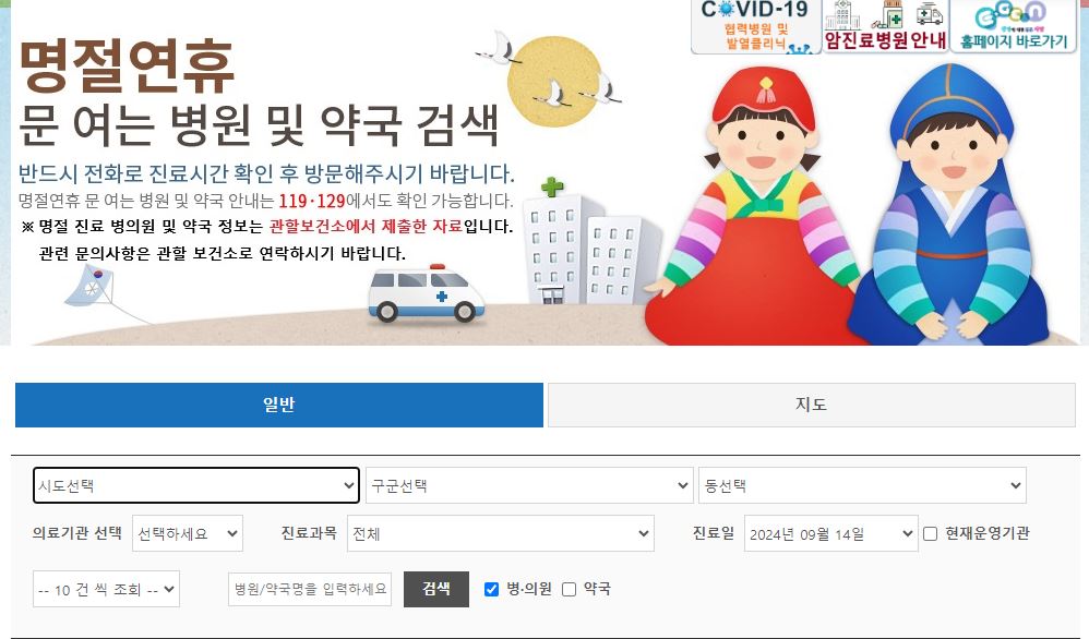 응급의료포털 E-Gen (이젠) 으로 명절연휴 진료가능 병원 약국 찾기