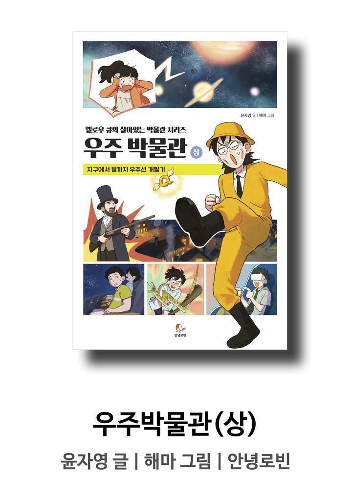 옐로우 큐는 과학 전문 큐레이터로 이번에는 달로 쏘는 우주선 개발에 결정적인 과학 지식을 전달하는 역할을 하게 되죠. 이 책은 예로우 큐와 과거로 간 과학 동아리 친구들이 고난도 과학 미션을 해결해가는 과정을 보여줍니다. 만화 느낌의 삽화가 중간중간에 있고, 학습 정보가 담긴 수업노트도 있어서 과학이론도 어렵지 않게 이해할 수 있어요. 과학 상식과 고전 명작이 함계하기 때문에 이 책 한권만 읽어도 여러분은 일석이조의 효과를 누릴 수 있답니다.
