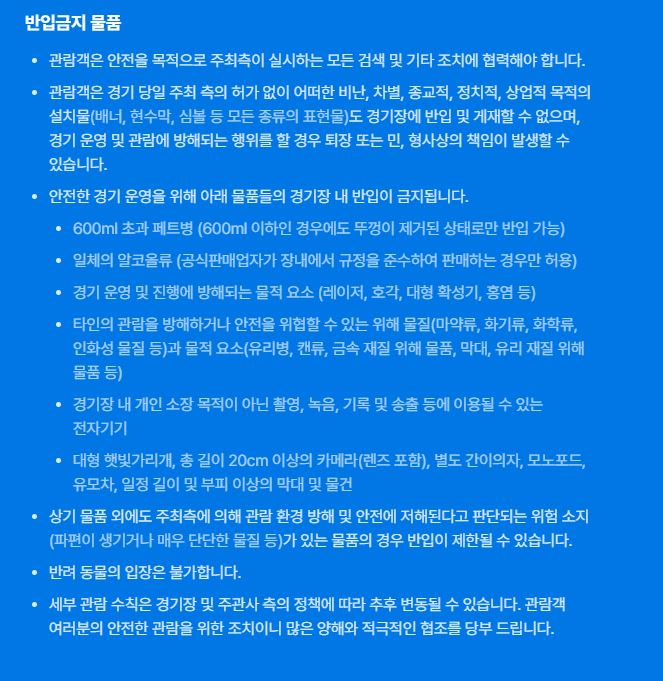 경기장 반입금지 물품