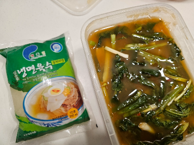 • 냉면육수 ( 1인분 1팩 으로 3인분 가능 ) - 저는 마트에서 750원짜리 2팩을 샀습니다.