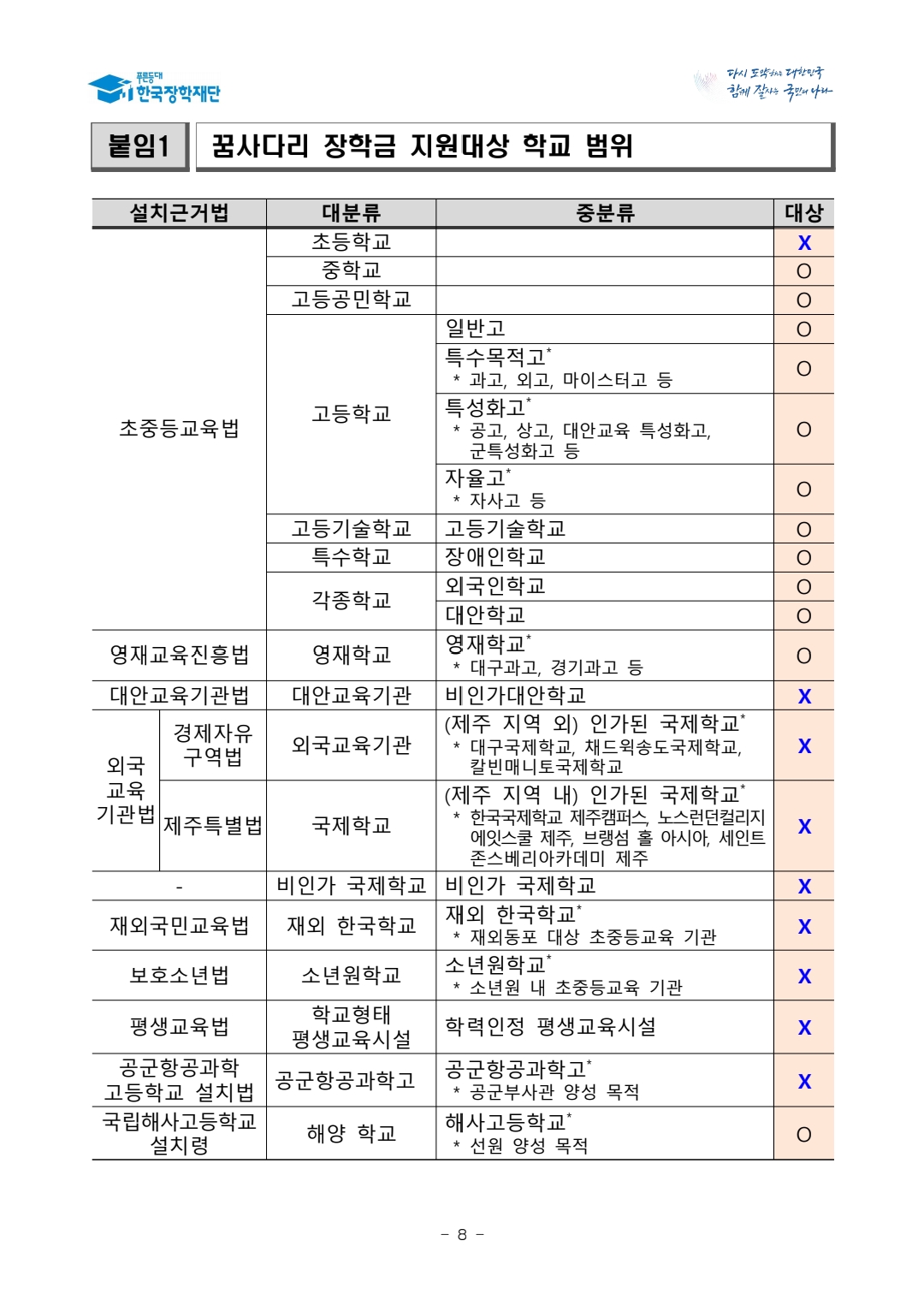 * 「초·중등교육법」 제2조 및 개별법령에 따라 설치된 학교 중 지원대상 범위에 포함되는 학교(상세 기준은 붙임1 선발 공고문 참조)