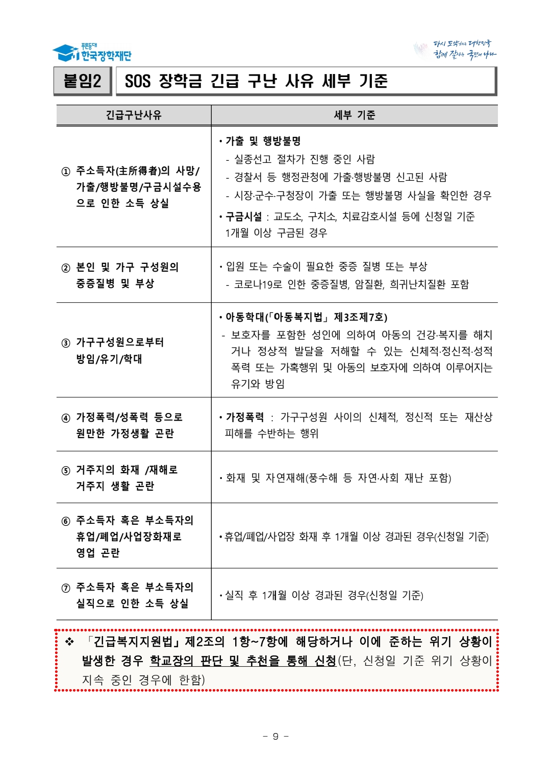 교육부와 한국장학재단은 긴급한 위기 상황에 처해 학업지속이 어려운 중·고등학생이 우수 인재로 성장할 수 있도록