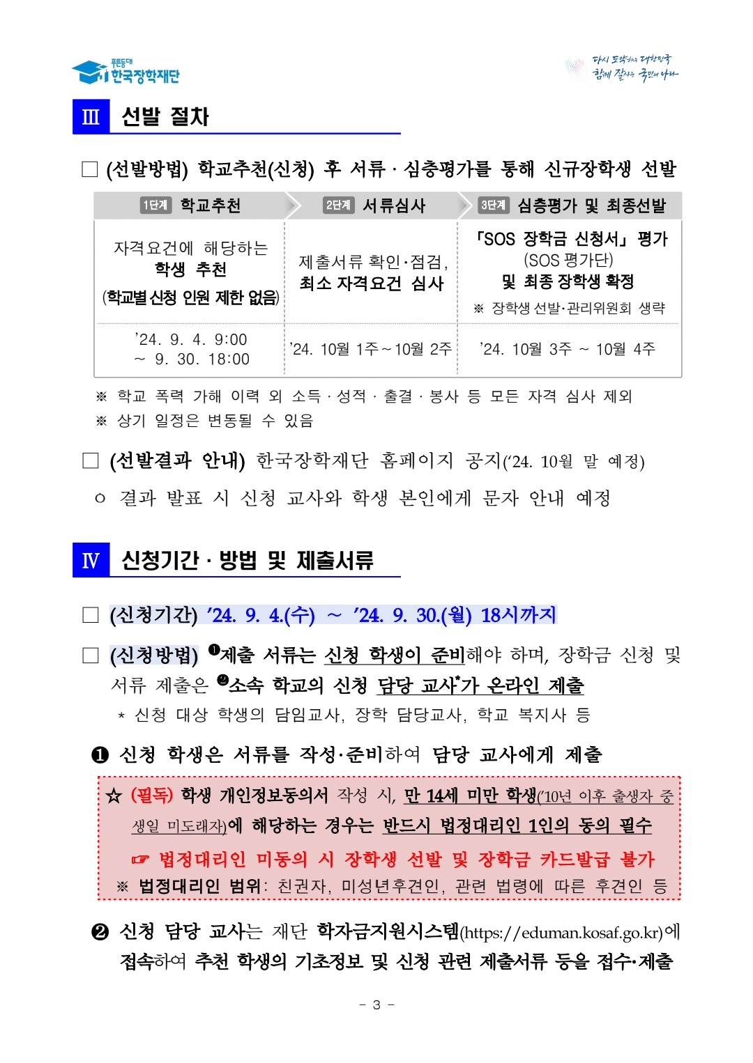 2024년 복권기금 꿈사다리 장학사업 「 SOS 유형 」 신규장학생 선발 공고